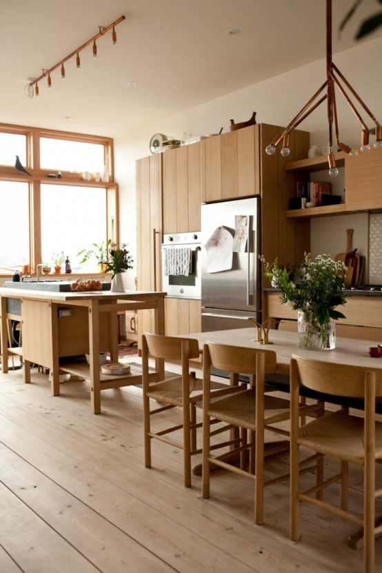 Đây là căn bếp của một gia đình ở Toronto, Mỹ nhưng lại mang những dấu ấn và phong cách thiết kế đến từ 2 lục địa Á và Âu. Sự giao thoa giữa phong cách Á đông của Nhật Bản với phong cách truyền thống của Na Uy đã tạo ra một không gian bếp núc hiện đại và mộc mạc. Cũng nhờ thế mà căn bếp dù nhỏ xinh nhưng vẫn đầy đủ tiện nghi, thoáng đãng và ngăn nắp.