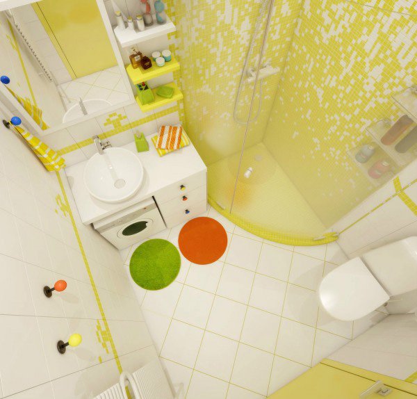 Phòng tắm không lớn nhưng thực sự xinh đẹp và thư giãn với gam màu xanh cốm - trắng cùng cách phân khu hợp lý. Khu vực bồn rửa được ngăn với khu vực tắm bằng vách kính. Chiếc máy giặt cũng được tích hợp dưới bồn rửa giúp chủ nhân tối đa hóa được tiện ích trong căn hộ nhỏ của mình.