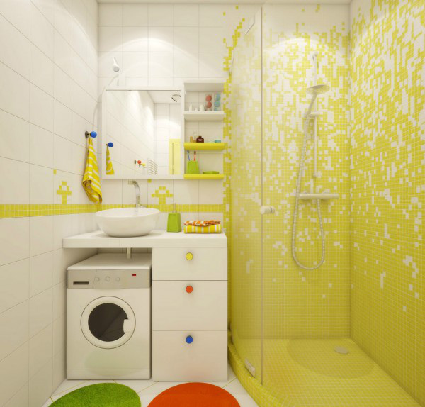 Máy giặt nhỏ được tích hợp dưới chân bồn rửa.