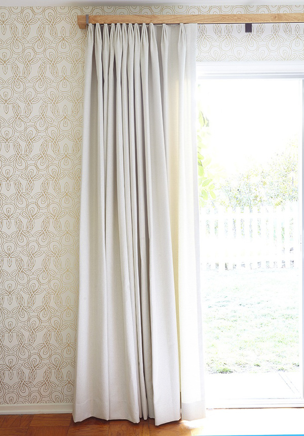 Phần tường vàng nhạt được thay bằng giấy dán tường tuy vẫn cùng là tông vàng nhưng có họa tiết 3D bắt sáng và nổi bật. Rèm cửa màu ghi nhạt được thay bằng tấm rèm mới màu trắng tinh.