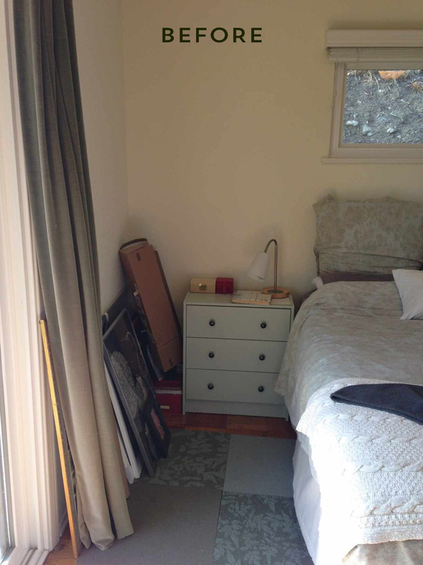 Phần nội thất trong phòng cũng được sửa sang lại. Những chiếc tủ đồ đen được sơn lại bằng màu trắng nhẹ nhàng. Những bức tranh đặt ngổn ngang bên cạnh giường lúc trước giờ được chọn lọc và treo lên. Ở trên chiếc tủ dưới chân giường chủ nhà còn bố trí thêm một tấm gương lớn.