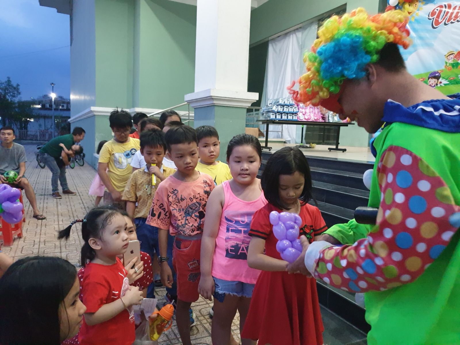 Mở đầu chương trình chú hề gửi tặng các bé những quả bong bóng với hình thù ngộ nghĩnh