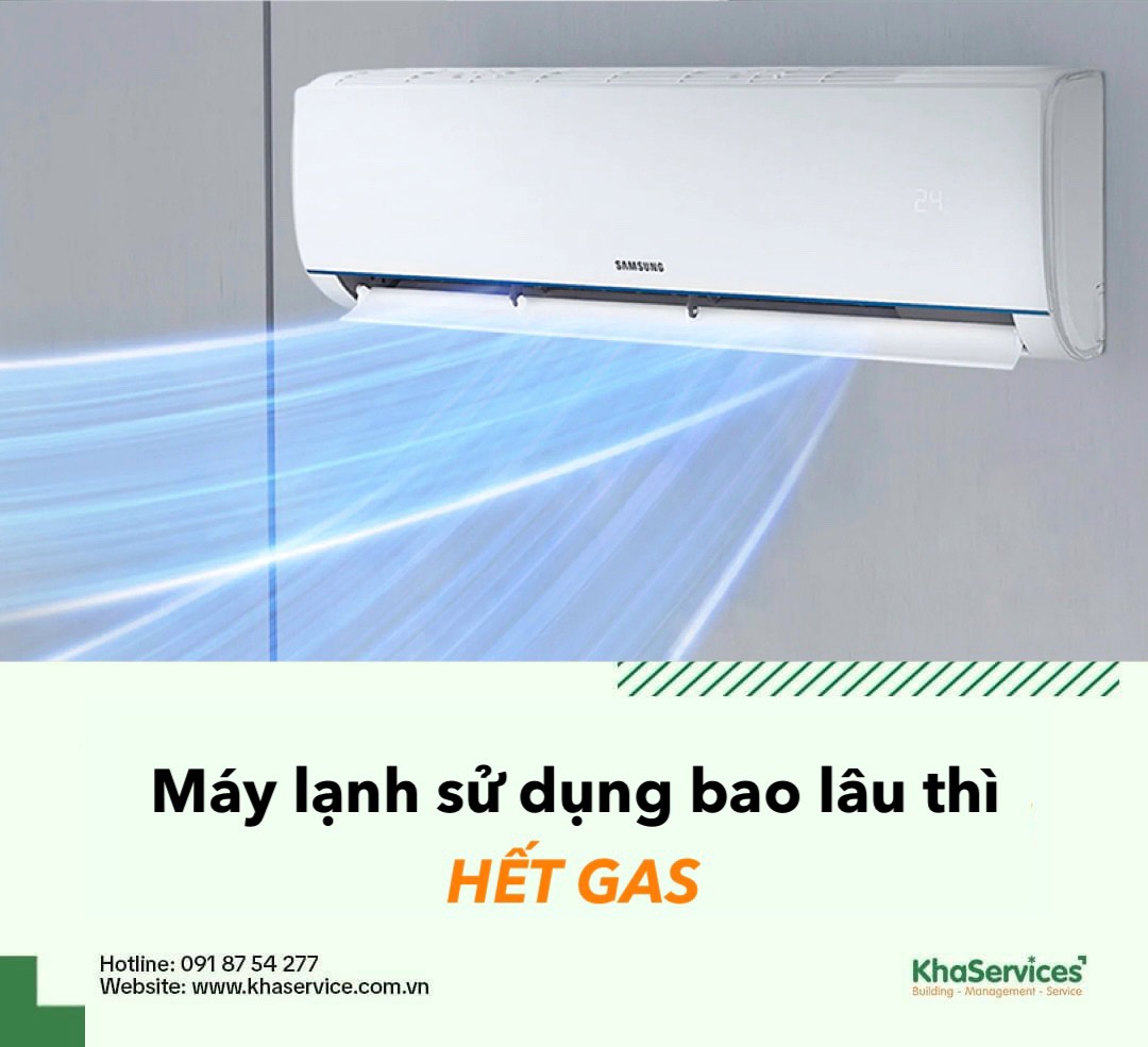 Thông thường, khi được lắp đúng kỹ thuật và không gặp sự cố trong quá trình sử dụng thì gas máy lạnh không thể thất thoát được mà sẽ tuần hoàn làm lạnh. Nên thời gian máy lạnh hết gas là khá lâu, khoảng 10 – 20 năm.