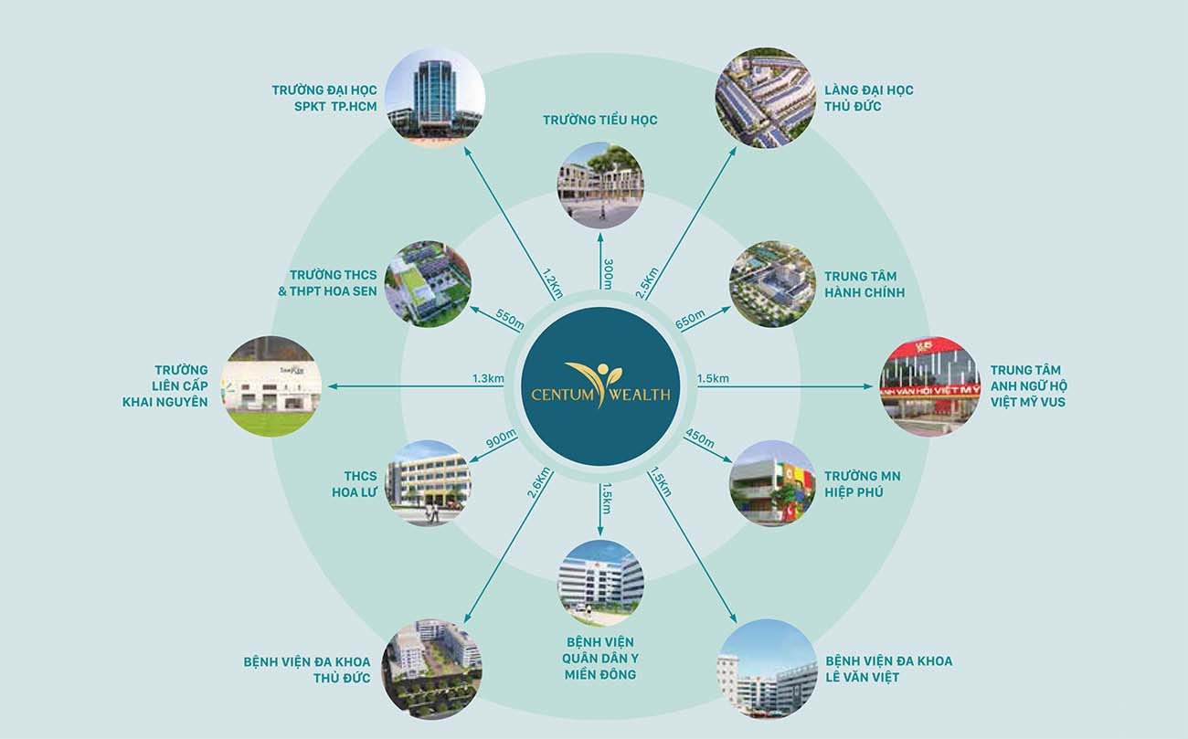 Dự án nằm tại trung tâm hành chính quận 9, dự án có lợi thế về giao thông và kết nối, giúp cư dân dễ dàng di chuyển đến các điểm quan trọng trong thành phố. Với vị trí đắc địa và tiện ích xung quanh, Centum Wealth Thủ Đức mang lại khả năng đầu tư với tiềm năng sinh lời cao trong tương lai gần.