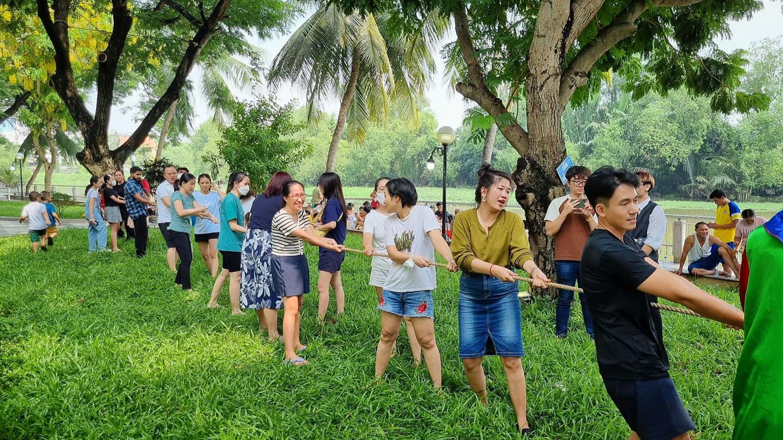 Bên cạnh đó, còn có trò chơi kéo co được mọi người hưởng ứng tham gia. Trò chơi đã giúp các em được thử sức mình và học hỏi về sự gắn kết tình đồng đội với những lời động viên, reo hò cổ vũ sôi động từ mọi phía.