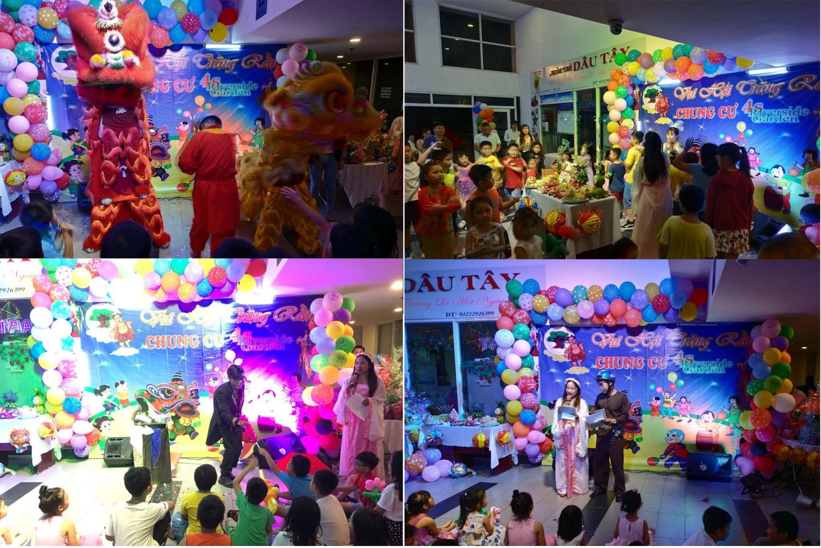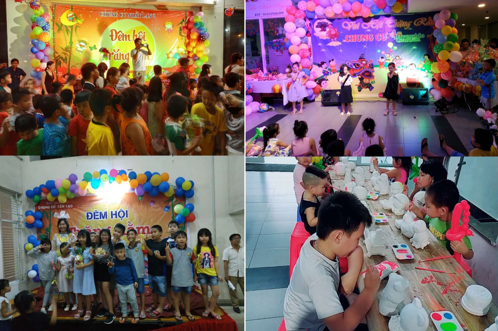 Đêm trung thu, các em được tham gia nhiều hoạt động truyền thống sôi nổi đặc trưng của đêm rằm như: Biểu diễn múa lân, rước đèn, giao lưu văn nghệ... cùng chú Cuội và chị Hằng Nga.Bên cạnh đó, các bé cũng rất hào hứng khi được tham gia vào nhiều trò chơi khác như: Ảo thuật, đố vui, các trò chơi trong chương trình “ Vui Hội Trăng Rằm “. Đặc biệt hơn, những tiết mục đặc sắc này đều do các thành viên của công ty KHASERVICE dàn dựng và thể hiện. Ngoài việc tham gia chương trình, các cháu thiếu nhi được tặng thêm những phần quà bao gồm: bánh trung thu, lồng đèn, kẹo và sữa do Ban Tổng Giám Đốc công ty cùng Ban Quản Trị chung cư tài trợ.